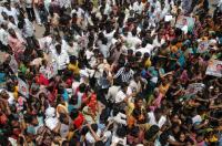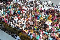 Supporters of Sushma Rajgopalareddy Protest, demanding for ticket for Assembly Elections, at KPCC, in Bangalore on Tuesday 16th April 2013