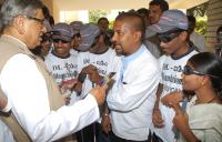 | Event Details: | SM Krishna, Congress Senior Leader being greeted by members of IDL Foundation Blind Band Team, on the eve of his 82nd Birthday at his residence, Sadashivanagar, in Bangalore on Wednesday 1st May 2013 |