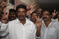 JDs Candidate Gopalaiah symbolises victory after winning for Mahalakshmi Layout constituency in Karnataka Assembly Elections, in Bangalore on Wednesday 8th May 2013