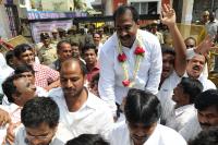 BJP Candidate Satish Reddy being lifted by Supporters after winning from Bommanahalli Constituency in Karnataka Assembly Elections, in Bangalore on Wednesday 8th May 2013