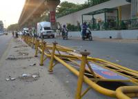 Barricades fell down due to gusty winds at MG Road, in Bangalore on Wednesday 8th May 2013