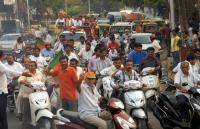 BJP Candidate Ravi Subramanya partakes in Vijayotsava Rally with supporters after winning for Basavangudi Constituency, in Bangalore on Thursday 9th May 2013