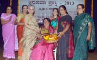 | Event Details: | Pratibha Nandkumar being felicitated by Anupama Prashasti from Shashi Deshpande, Savita Nagabhushan, Dr Vasundara Bhupati and others, at Kannada Sahitya Parishath, in Bangalore on Sunday 26th May 2013 |