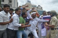 | Event Details: | Members of District Committee Congress seen protesting against the JDs Former MLA Srinivas for commenting against Ramya, byelections MP Candidate from Mandya Lokasabha, Police arresting the members while trying to attack JDs Office, near Anand Rao Circle, in Bangalore on Saturday 10th August 2013 |