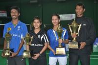 | Event Details: | Shikha Gautam, Daniel Farid, Rasika and Jaiswal seen with their trophy after the All India Junior Ranking Badminton Tournament Finals, organized by Karnataka Badminton Association, in Bangalore on Saturday 10th August 2013 |