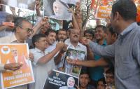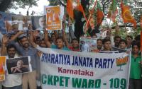 BJP Leaders celebrate as Narendra Modi is chosen as Prime Minister Candidate of BJP at SBM Circle, in Bangalore on Saturday 14th September 2013