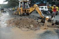 BBMP Workers Repair the Damaged Drinking Water Pipeline at Queens Road