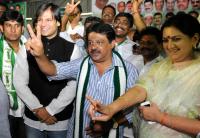 | Event Details: | Actor Vivek Oberoi with Nandini Alva, JDs Bangalore Central JDs Candidate showing the Victory sign, during JDs Workers Meeting, at Chamarajpet, in Bangalore on Sunday 30th March 2014 |