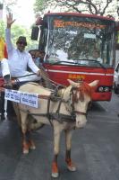 | Event Details: | Members of Kannada Chalavali Vatal Paksha led by Vatal Nagaraj, demonstrating by travelling in a horse cart, protesting against BMTC Bus Fare Hike, at SBM Circle, in Bangalore on Saturday 26th April 2014 |
