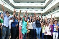 10th CBSE Students celebrate after seeing their results, at Venkat International Public School, in Bangalore on Tuesday 20th May 2014