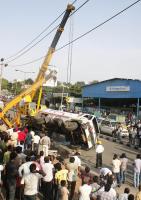 | Event Details: | LPG bullet tanker toppled on Magadi Road near Kamakshipalya, Police and Fire personnel used a crane to lift the tanker, in Bangalore on Wednesday 28th May 2014 |