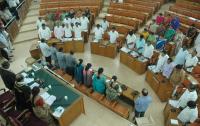 Mayor Satyanarayana with Deputy Mayor Indira and BBMP Commissioner M Lakshminarayana during the BBMP Council Meeting, at BBMP, in Bangalore on Tuesday 17th June 2014