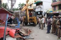BBMP officials demolition drive of roadside illegal shops at Neelasandra, in Bangalore on Saturday 21st June 2014