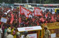 | Event Details: | AITUC members participated in a protest rally from Bangalore City Railway Station to Freedom Park, the AITUC members protested in demand for pay hike, in Bangalore on Monday 21st July 2014 |