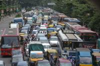 Heavy traffic jams reported near sheshadri road due to many protests rallies, in Bangalore on Monday 21st July 2014