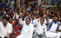 Members of Republican Party of India protesting to fulfill their various demands, at SBM Circle, in Bangalore on Tuesday 5th August 2014