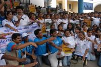 | Event Details: | Ex MLA Narendra Babu seen with Students taking oath, during the inauguration of International Youth Day, at Kanteerva Stadium, in Bangalore on Tuesday 12th August 2014 |