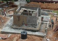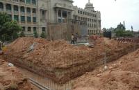 Work in progress at a fast pace to construct the Podium for the installation of Mahatma Gandhi Statue in between Vidhana Soudha and Vikasa Soundha, in Bangalore on Saturday 16th August 2014