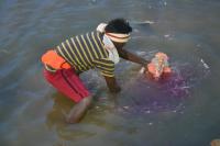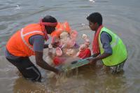 Volunteers immersing Ganesha idols, celebrating Ganesha Chaturthi Festival, at Sankey Tank, in Bangalore on Saturday 30th August 2014