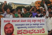 Members of Suvarna Karnataka Women and Child Society protesting against Raghveshwar Bhaarti Swamiji of Ramchandrapura Mutt, in Bangalore on Wednesday 3rd September 2014