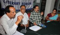 | Event Details: | R Doddegowda with JN Shamarao, Prakash Kambattalli and P Chandrika addressing the gathering celebrating 60th Anniversary of Sahitya Academy, at Premises, in Bangalore on Sunday 21st September 2014 |