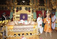 | Event Details: | Chaduranga Kantharaj Urs, the eldest nephew of Srikanta Datta Narasimharaja Wadiyar placed the sword on the throne with palace priest supervising the rituals for the beginning of Navrathri Celebrations, at Mysore Palace, in Mysore on Thursday 25th September 2014 |