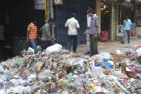 Dumped garbage causing unbearable stink after the Midnight showers, at Avenue Road, in Bangalore on Friday 26th September 2014