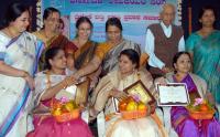 | Event Details: | Sa Shi Marulaiah presenting "Triveni Datti" award to Mangala Prasad, Madura Karnam and SP Vijayalakshmi, at an award presentation programme organised by Karnataka woman writers Association at Kannada Sahitya Parishat, also seen are Dr Vasundara Bhupati, President, Karnataka Lekakiyara woman writers Association and others, in Bengaluru on Sunday 9th November 2014 |