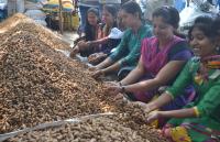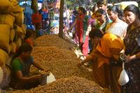 People purchasing Groundnuts, celebrating Kadlekai Parishe, at Bull Temple Road, in Bengaluru on Monday 17th November 2014