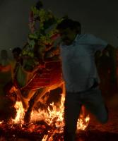 | Event Details: | Cows jumping through the fire as a ritual which is being performed from ages as part of the Sankranthi Festival, at Malleshwaram, in Bengaluru on Thursday 15th January 2015 |