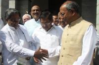 | Event Details: | K Siddaramaiah, Chief Minister with KPCC President and MLC G Parmeshwar greeting AICC General Secretary Digvijaya Singh after their meeting, at Kumarkrupa Guest House, in Bengaluru on Saturday 24th January 2015 |