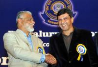| Event Details: | Former ISRO Chairman Dr K Radhakrishnan and Badminton legend Prakash Padukone share a light moment during the International Customs Day 2015, at HAL Convention Center, in Bengaluru on Tuesday 27th January 2015 |