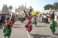 Cultural dances and school children participated during the launch of 843rd Shivayogi Siddarameshwara Jayanthi procession in front of Kote Anjaneyaswamy Temple, in Mysore on Thursday 5th February 2015