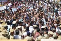 Adult education teachers participated in a protest rally and demanded for salary hike, the protest rally was held at Freedom Park in Bengaluru on Friday 6th February 2015
