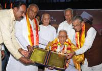 | Event Details: | Former PM HD Devegowda presenting Kengal Hanumantaiah award to Freedom Fighter HS Doreswamy at Kannada Sahitya Parishat, also seen are Former Union Minister MV Rajashekaran and others, in Bangalore on Sunday 8th February 2015 |