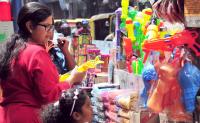 People seen purchasing colors for Holi Festival at Malleswaram, in Bengaluru on Wednesday 4th March 2015