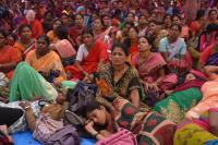 Anganwadi workers seen relaxing during their protest at Freedom Park, in Bengaluru on Wednesday 18th March 2015