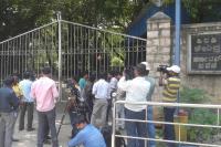 Media people waiting outside CID centre where many senior police officials are being questioned in the lottery scam, in Bangalore on Sunday 24th May 2015