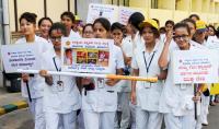 Nursing students partake in awareness rally on World Anti Tobacco Day at Kidwai Hospital, in Bengaluru on Sunday 31st May 2015