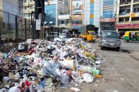 Garbage seen covering half of the Siddaiah road cross and causing a lot of problems to commuters, in Bengaluru on Tuesday 2nd June 2015