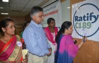 | Event Details: | Lukose Vallatharai, former labour Commissioner with Vinutha, Assistant Labour Commissioner and Geetha Menon participated in a convention on the International Domestic Workers Day and urged the government to ratify the C189 convention, the meeting was held at Jain College, JC Road, organised by Domestic Workers Rights Union, in Bengaluru on Tuesday 16th June 2015 |