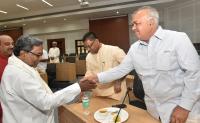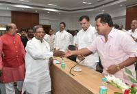 CM Siddaramaiah seen interacting with Karnataka leaders during the CLP meeting at Suvarna Soudha in Belagavi on Wednesday 1st July 2015