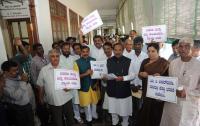 Opposition leaders Protest against Minister UT Khader at Suvarna Soudha