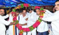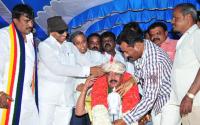 | Event Details: | Sa Ra Govind, Kannada Activist with Vatal Nagaraj and V Somanna being felicitated, as part of the birthday celebration program of Sa Ra Govind at Sri Anjaneya Temple at SBM Circle, organised by Karnataka Rakshaka Samithi, in Bengaluru on Monday 13th July 2015 |