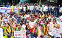 Members of Jaya Karnataka participated in a protest rally at SBM Circle against Lokayukta Y Bhaskar Rao and demanding for his resignation for alleged corruption charges, in Bengaluru on Tuesday 14th July 2015