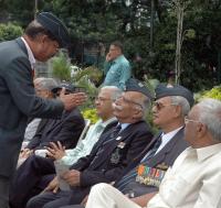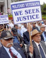 Members of the Ex Service men Association staging protest demonstration in front of Town Hall to protest against the inordinate delay in grant of One Rank One Pension, in Bangalore on Sunday 19th July 2015