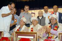 | Event Details: | Former Union Minister Veerappa Moily presented "Anakru Nirman Swarna 2015" awards to Dr Baraguru Ramachandrappa, Dr HS Venkaesth Murthy and Dr Narahalli Balasubramanya at Gayana Samaj, organised by VLN Nirman Foundation, in Bangalore on Sunday 26th July 2015 |