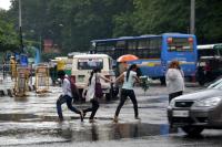 Heavy rains lashed Bangalore city as people were seen running for shelters and water clogged roads were causing problems to the motorists, in Bengaluru on Tuesday 4th August 2015
