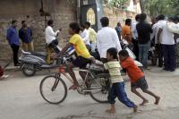 Children seen enjoying their holiday on BBMP elections day at Sri Rampura, in Bengaluru on Saturday 22nd August 2015