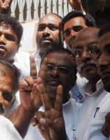 | Event Details: | Shakeel Ahmed of Congress won from Ward no 91, Bharathinagar, seen celebrating with his supporters in the BBMP Elections 2015, in Bengaluru on Tuesday 25th August 2015 |